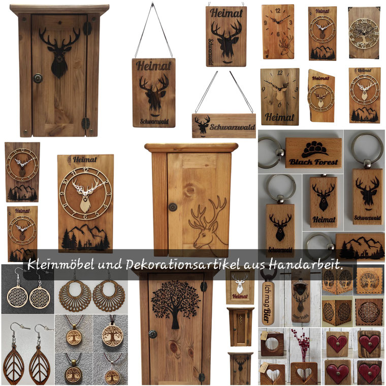 In meiner kleinen heimischen Werkstatt in Hohberg_Diersburg nähe Offenburg produziere ich in kleiner Stückzahl Kleinmöbel wie zum Beispiel Hängeschränke, Schlüsselkasten, Regale, Schlüsselbretter und verschiedene Dekorationsartikel aus Holz.